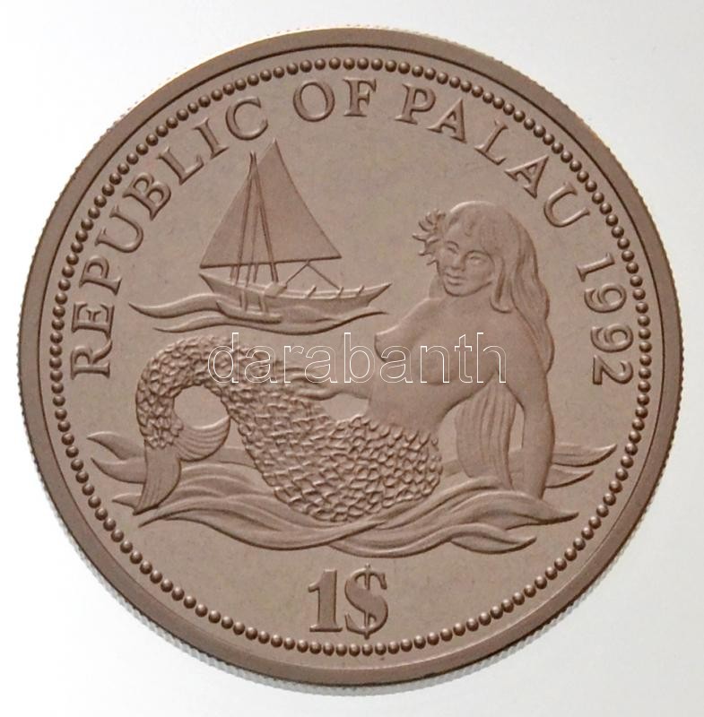 Description: Palau 1992. 1$ Cu-Ni "A tengeri élet védelmének éve - Vitorlás és sellő" multicolor T:1(PP)