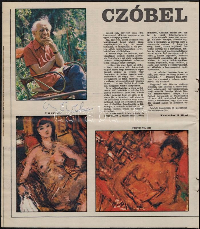 1973 Czóbel Béla (1883-1976) festőművész aláírása a Nők Lapja magazin ...