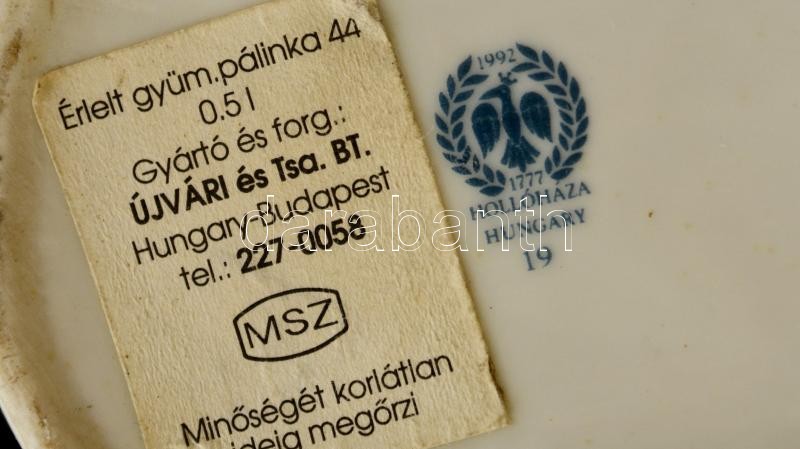 Hollóházi porcelán "Beregi barackpálinka" butykos, matricás, hibátlan, jelzett, m: 19 cm