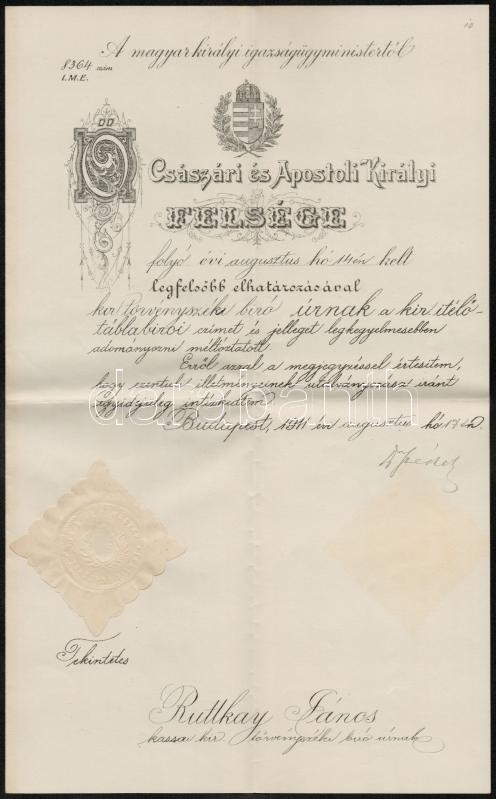 https://www.darabanth.com/en/312-Online-auction/312.0/Other-collectibles/Documents~16/1911-Tablabiroi-kinevezes-Szekely-Ferenc-igazsagugyminiszter-sajat-kezzel-alairasaval~II1712097