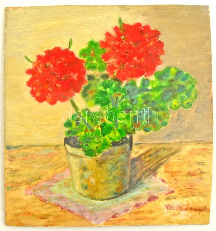 Kiss jelzéssel: Muskátlis csendélet, olaj, farost, 28,5×26,5 cm