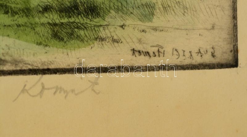 Komjáti-Wanyerka Gyula (1894-1958): Tájkép. Színezett rézkarc, papír, ...