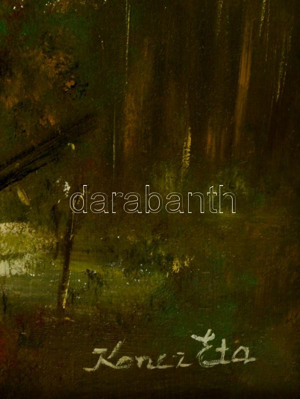 Koncz Eta (?-2016): Kilátás a dombról. Olaj, farost, jelzett, keretben, 37×56 cm