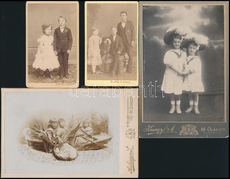 cca 1860-1890 Vizitkártya és kabinetfotó, keményhátú fotótétel különböző magyar műtermekből: Kumpf, (M. Óvárott), Skopall, Aichinger.