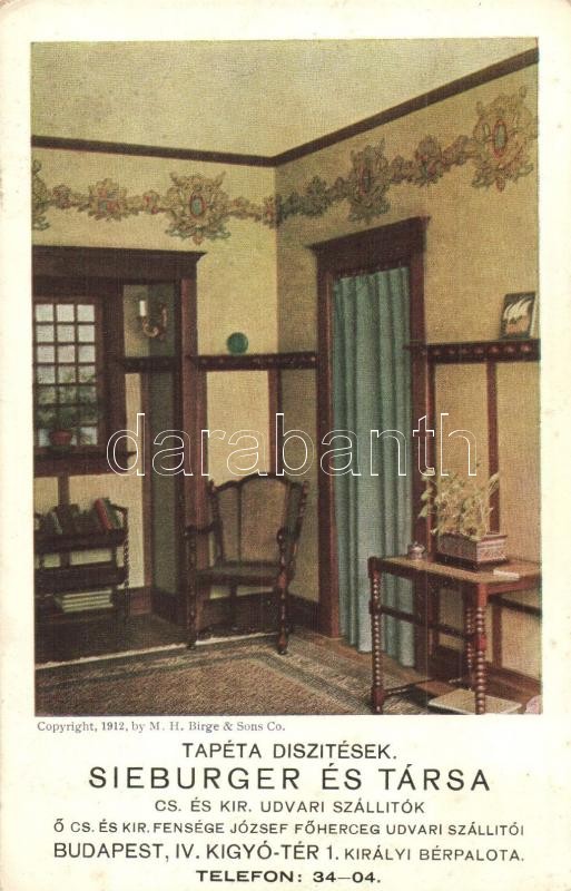 Sieburger és Társa udvari szállítók reklámlapja, tapéta díszítések. Bu... https://www.darabanth.com/en/312-Online-auction/312.0/Postcards/Advertisement~500042/Sieburger-es-Tarsa-udvari-szallitok-reklamlapja-tapeta-diszitesek-Budapest-V-Kigyo-tC3~II1711671