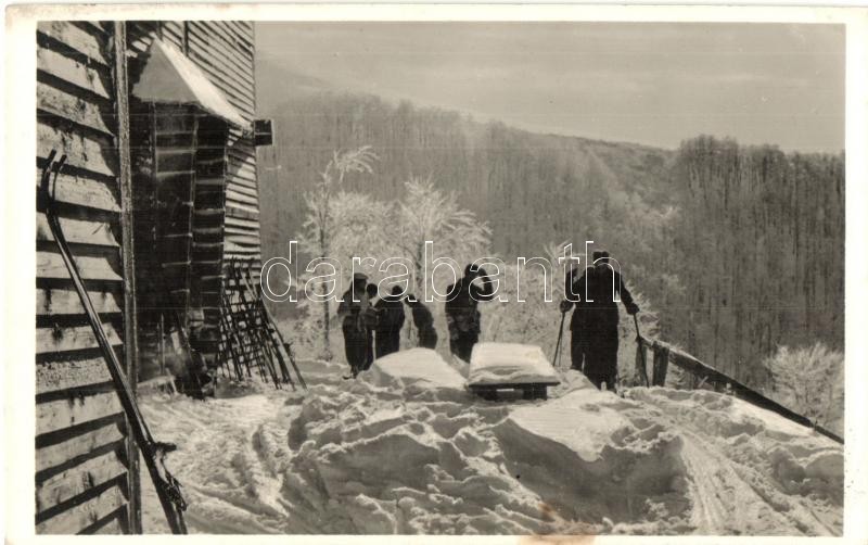 Description: Tiszaborkút, Kvaszi; Mencsul, a Magyar Cserkészszövetség Kárpátaljai Menedékháza, síelők. Kolozsváry Béla felvétele / rest house of Hungarian Scout Association of Transcarpathia, skiers (EK)
