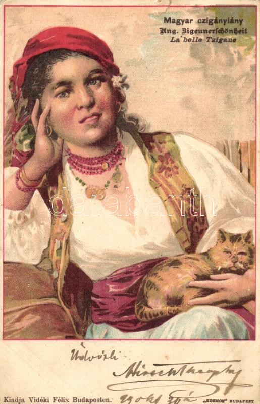 1899 Magyar cigánylány. Vidéki Félix kiadása. Kosmos / Ung. Zigeuners... https://www.darabanth.com/en/312-Online-auction/312.0/Postcards/Folklore~500021/1899-Magyar-ciganylany-Videki-Felix-kiadasa-Kosmos--Ung-Zigeunerschonheit-La-belle-Tzig~II1706780