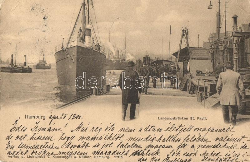 Hamburg, Landungsbrücken St. Pauli / port view with steamship (EK)
