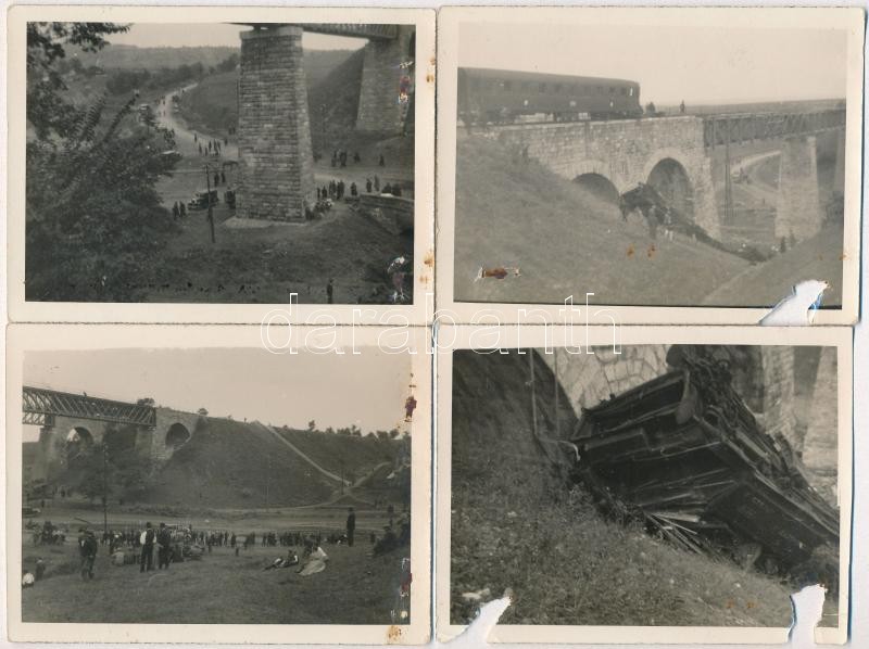 1931 Biatorbágy, Torbágy; Felrobbantott vasúti híd Matuska Szilveszter merénylete után, viadukt, mozdony maradványok, photo - 4 db sérült fotó