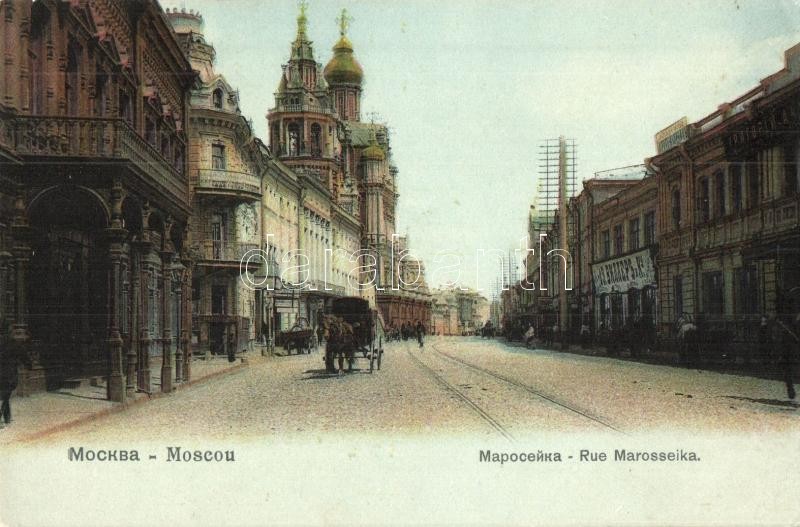 Moscow, Moskau, Moscou; Rue Marosseika / Maroseyka street view, shops....