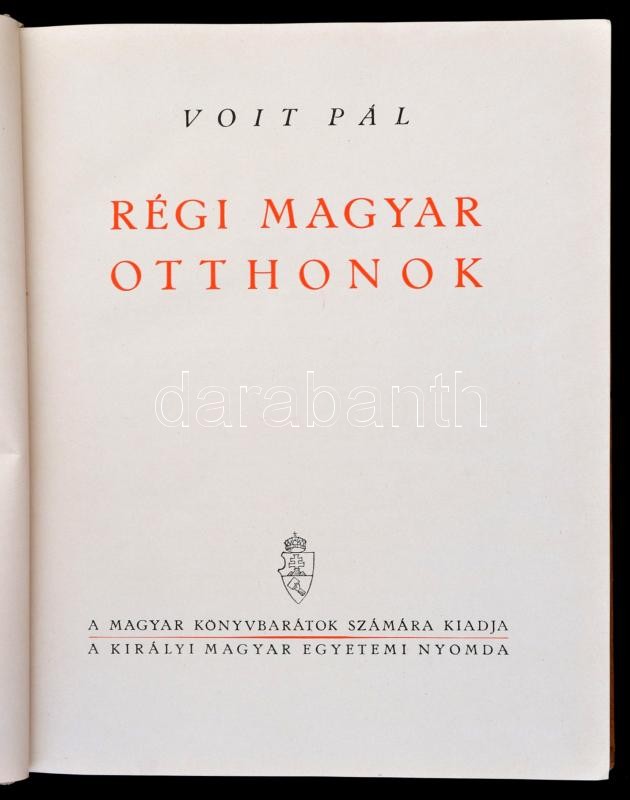 Voit Pál: Régi magyar otthonok. Budapest, 1943, Királyi Magyar Egyetem... https://www.darabanth.com/en/313-Online-auction/313.0/Books/Books-Architecture-Art~400017/Voit-Pal-Regi-magyar-otthonok-Budapest-1943-Kiralyi-Magyar-Egyetemi-Nyomda-319-p-Gazdag-fek~II1697217