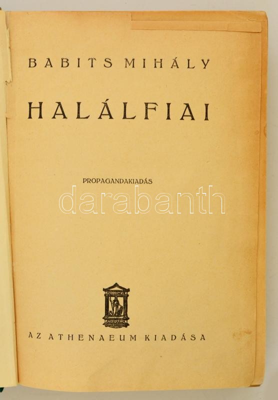 Babits Mihály: Halálfiai. Propagandakiadás. Bp.,(1935), Athenaeum. Kia...