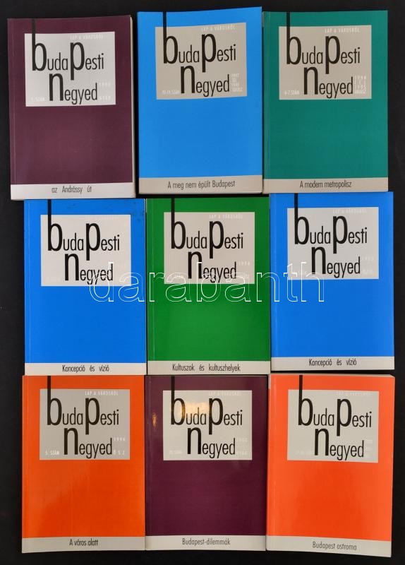 1993-2010 Budapesti Negyed 16 kötete: 1-3.,5-7.,18-19.,26-31.,49-50.,56.,63.,68. számok (I. évf.1.,2. (x2), II. évf. 1.,3., II évf 4. - III. évf. 1., V. évf. 4-VI. évf. 1., VII. évf. 4.-VIII. 1.,VIII. évf. 2.,3-4.,IX. évf. 1.,XIII. évf. 3.,4.,XV. évf. 2., XVII. évf. 1., XVIII. évf. 2.) Jó állapotban.
