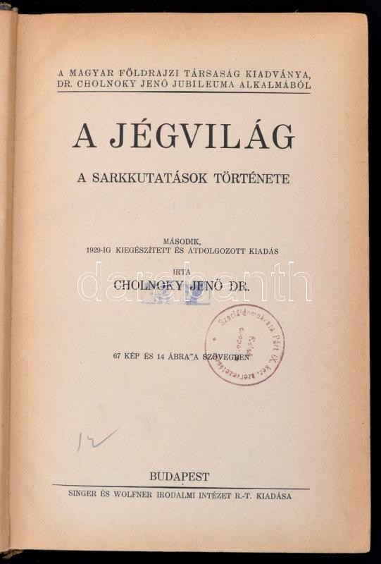 Cholnoky Jenő: A Föld titkai II. kötet: Jégvilág. 67 kép és 14 ábra a szövegben. Bp., 1930, Singer és Wolfner, (Hornyánszky V.-ny.), 231 p. Kiadói aranyozott egészvászon sorozatkötésben, kopottas borítóval, volt könyvtári példány.