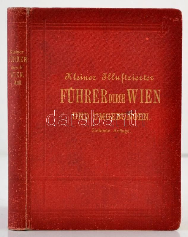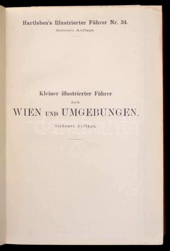 Julius Meuer: Kleiner illustriertes Führer durch Wien und Umgebung. Wien-Leipzig, 1907, A. Hartleben's Verlag, VIII+112+16 p. Hetedik kiadás. Német nyelven. Kiadói aranyozott egészvászon kötés, márványozott lapélekkel, a kihajtható cÃmkép szakadozott, a térképmelléklet hiányzik./ Julius Meuer: Kleiner illustriertes Führer durch Wien und Umgebung. Wien-Leipzig, 1907, A. Hartleben's Verlag, VIII+112+16 p. Seventh Edition. Linenbinding, in German language, the frontispiece raunchy, the map lost.