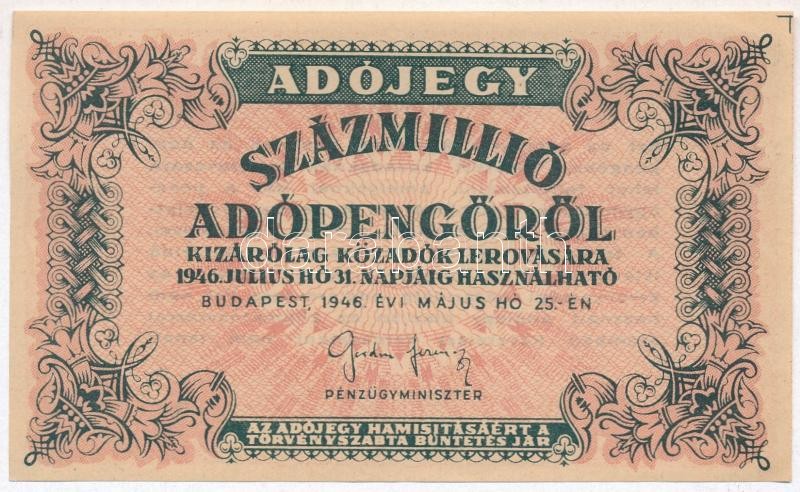 1946. 100.000.000AP sorozat- és sorszám nélkül T:II