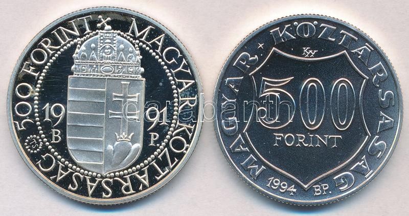 1991. 500Ft Ag "II. János Pál pápa látogatása" + 1994. 500Ft...