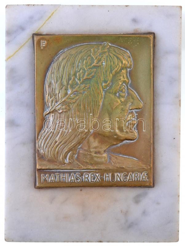 Pátzay Pál (1896-1979) DN. "Mathias Rex Hungariae" préselt réz plakett márványlapon, hátoldalán (78x61mm) T:2