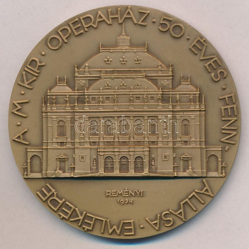 Reményi József (1887-1977) 1934. "A M. Kir. Operaház 50 éves fenn... https://www.darabanth.com/en/313-Online-auction/313.0/Numismatics/Hungarian-commemorative-medals-and-plaques~300009/Remenyi-Jozsef-1887-1977-1934-A-M-Kir-Operahaz-50-eves-fennallasanak-emlekere-Br-eml~II1711777