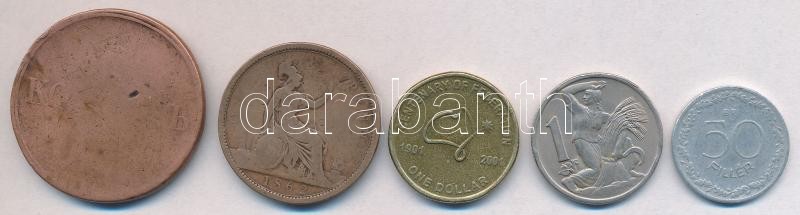 Description: 5db-os vegyes érme tétel, benne Magyarország, Csehszlovákia, Nagy-Britannia, Ausztrália és Orosz Birodalom T:2-3