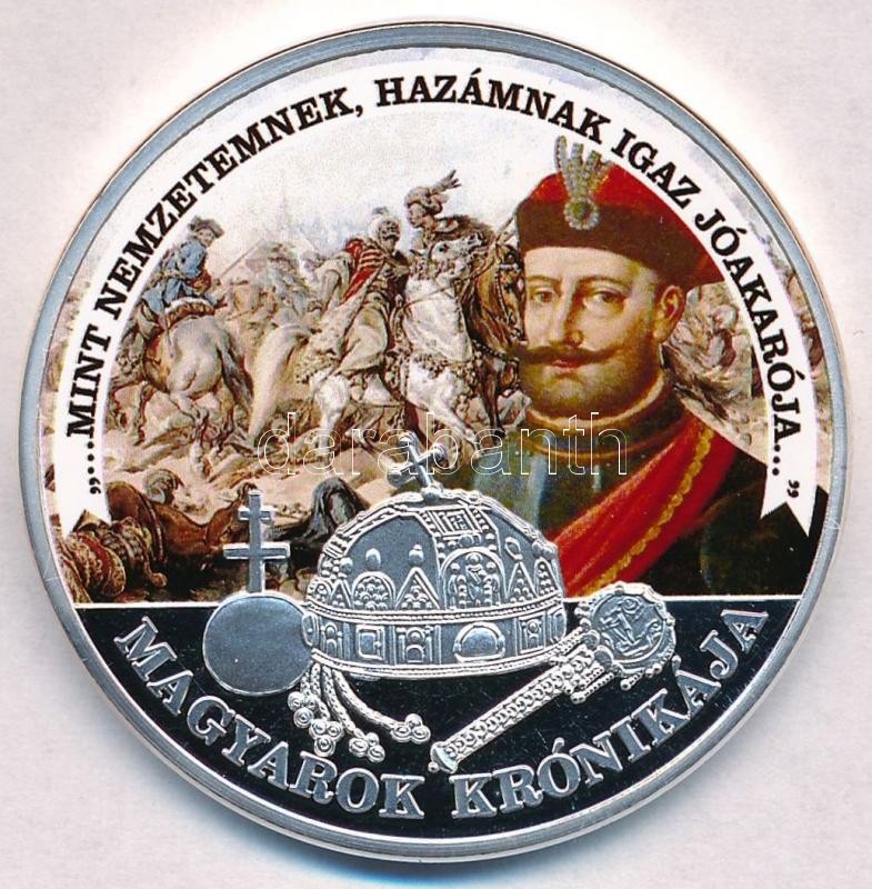 DN "Magyarok Krónikája - ... mint nemzetemnek, hazámnak igaz jóakarója... / 1907 5 korona" ezüstözött, multicolor Cu emlékérem (42mm) T:PP