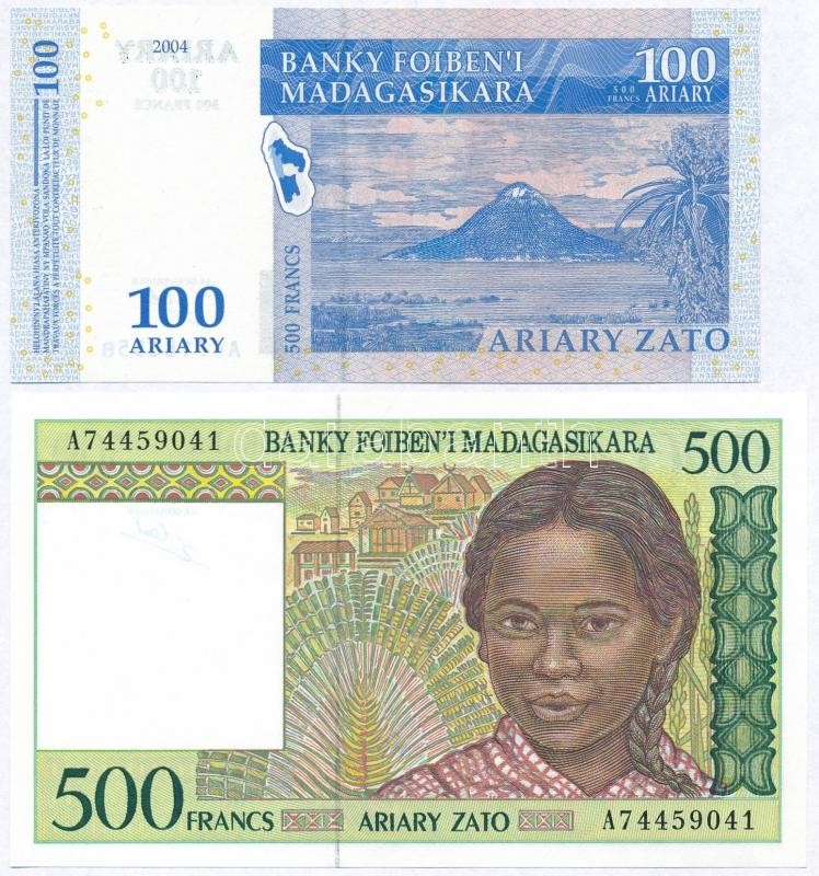 https://www.darabanth.com/en/313-Online-auction/313.0/Numismatics/Worldwide-banknotes~300012/Madagaszkar-1994-500Fr-plus-2004-100A-TI-II--Madagascar-1994-500-Francs-plus-2004-100-Ariary-CAU-X~II1712578