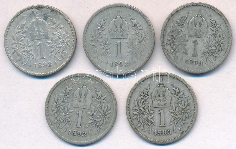 Ausztria 1893. 1K Ag "Ferenc József" (5x) T:2-,3