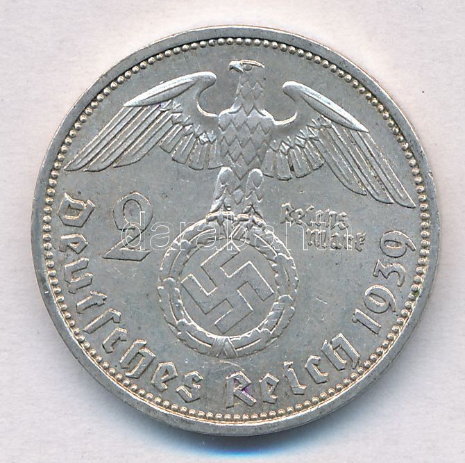https://www.darabanth.com/en/313-Online-auction/313.0/Numismatics/Worldwide-silver-and-metal-coins~300013/Nemet-Harmadik-Birodalom-1939A-2M-Ag-Hindenburg-T2---German-Third-Reich-1939A-2-Mark-Ag-Hindenb~II1711886