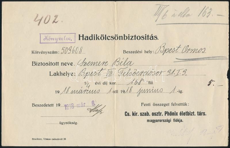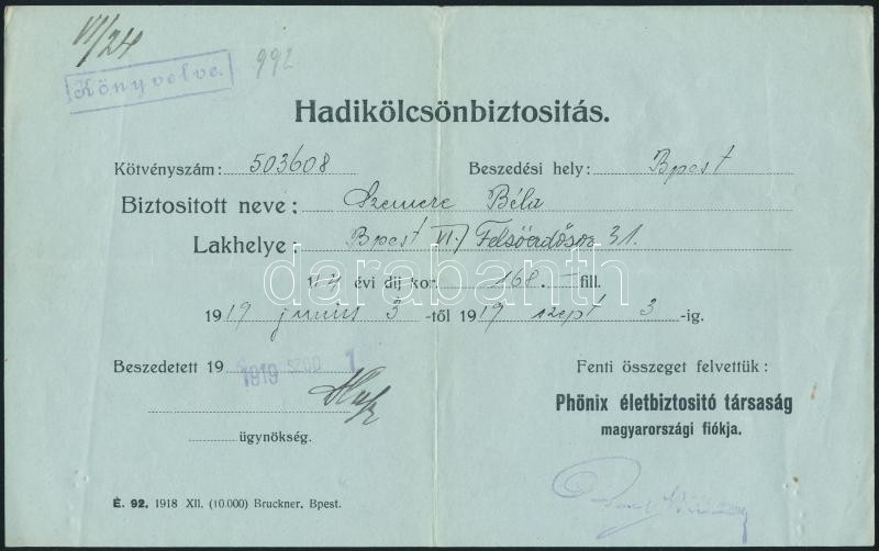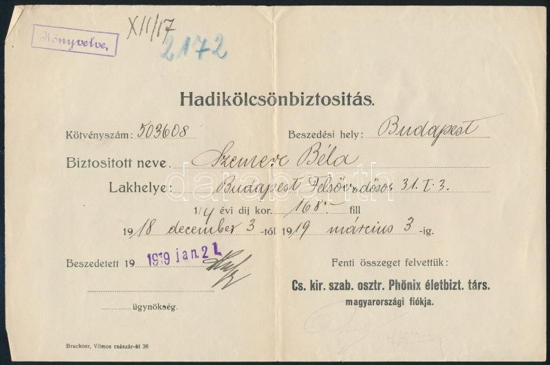 https://www.darabanth.com/en/313-Online-auction/313.0/Other-collectibles/Documents~18/1918-1919-Phonix-Eletbiztosito-Tarsasag-hadikolcson-nyugtai-3-db-hajtasnyomokkal~II1714112