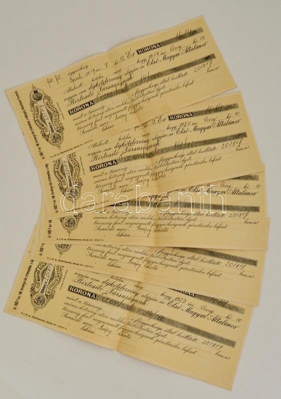 https://www.darabanth.com/en/313-Online-auction/313.0/Other-collectibles/Documents~18/1919-1923-Elso-Magyar-Altalanos-Biztosito-Tarsasag-dijkotelezvenyei-5-db~II1713929