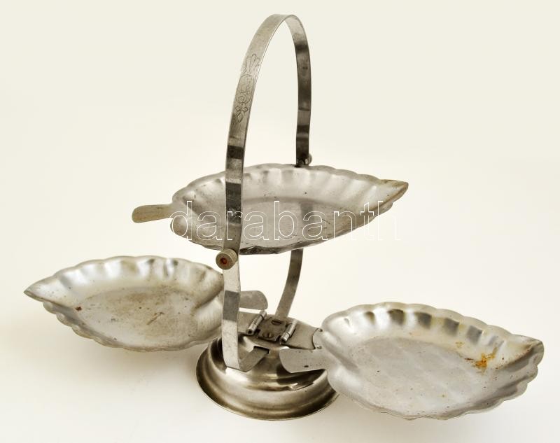 Fém kínáló, foltos, jelzett, m: 25 cm, h: 36 cm.