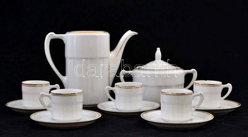 Retró porcelán kávéskészlet. Aranyozott mázas fehér porcelán. Jelzés n...