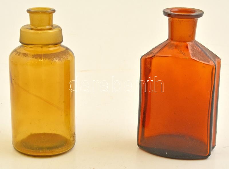 2 db barna patikaüveg, jelzés nélkül, kopásokkal, m: 14,5 cm