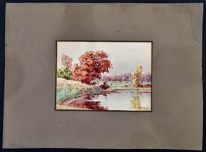 Diószeghy László (1877-1942): Vízpart. Akvarell, papír, jelzett, 11×15...