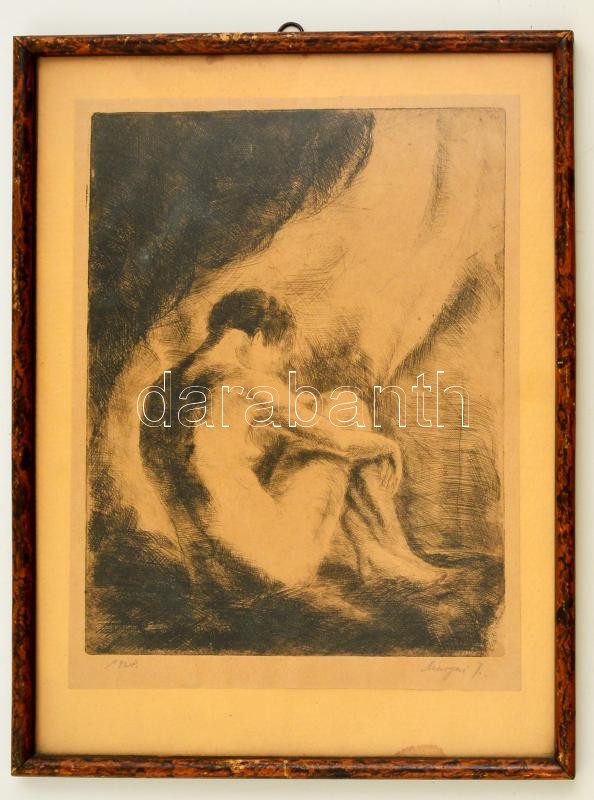 Murgai jelzéssel: Akt, rézkarc, papír, üvegezett fa keretben, 25,5×20,...