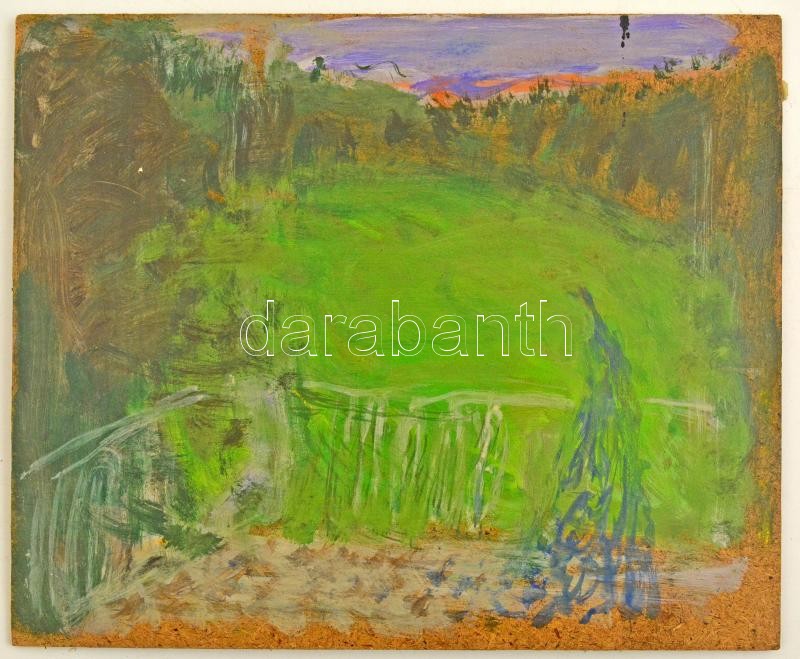 Somlai Vilma (1938-2007): Zöld táj, olaj, farost, hátulján pecséttel j...