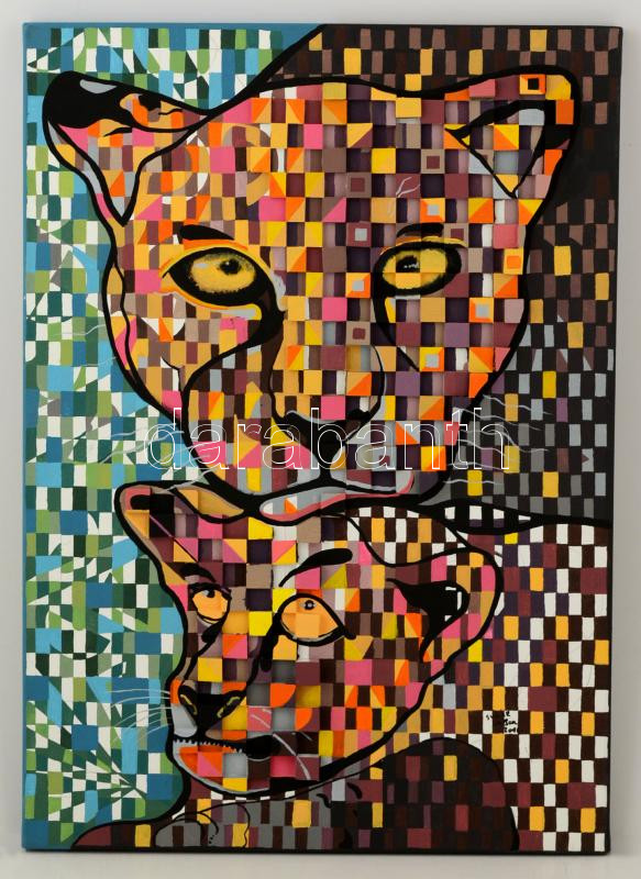 Sugár Gábor (1976- ): Puma. Akril-kollázs, vászon, jelzett, 70×50 cm
