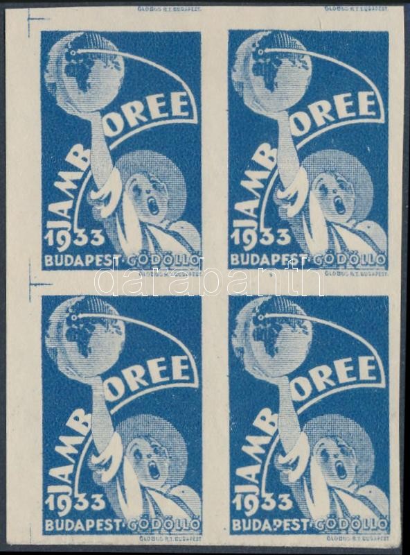 1933 Jamboree Budapest-Gödöllő levélzáró vágott, kék négyestömb