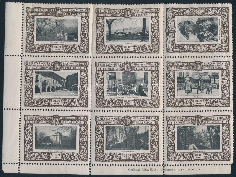 1951 I. Bélyegkiállítás 9 db-os levélzárótömb