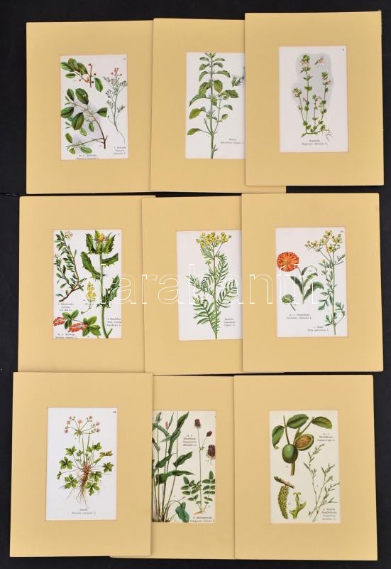 Növényeket és a növények részeit bemutató litho képek, német nyelven feliratozva, paszpartuban, 9 db, 16x10 cm