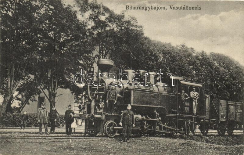 Biharnagybajom, Vasútállomás, gőzmozdony, vasutasok (EK)