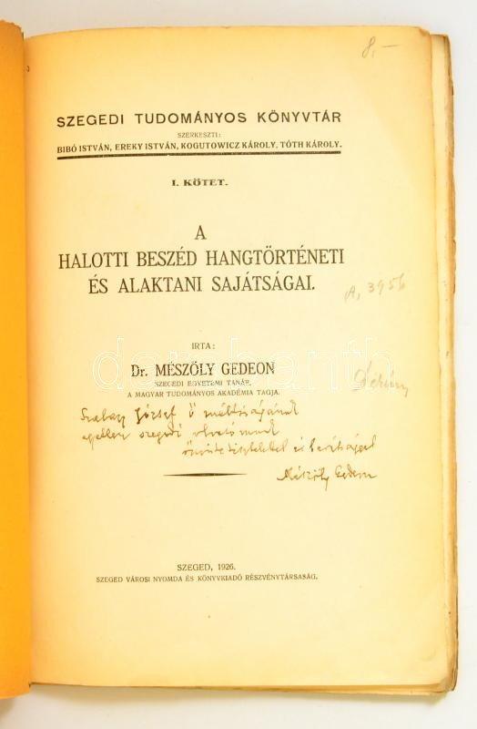 Mészöly Gedeon, dr.: A Halotti Beszéd hangtörténeti és alaktani sajáts... https://www.darabanth.com/en/314-Online-auction/314.0/Books/Books-History~100034/Meszoly-Gedeon-dr-A-Halotti-Beszed-hangtorteneti-es-alaktani-sajatsagai-Dedikalt---Sze~II1723125