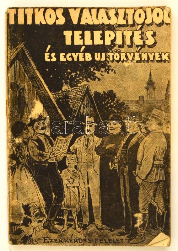 Titkos választójog, telepítés, hitbizományi, tűzharcos, munkásbiztosítási, hegyközségi, erdő és a többi új törvények, rendeletek. Az "Ezer kérdés, 'ezer felelet" tanácsadó könyv III. kötete. Bp.,1938, "Igazság" Politikai Hetilap, (Általányos Nyomda Rt.-ny.), 160 p. Kiadói papírkötés, kissé gyűrött borítóval.
