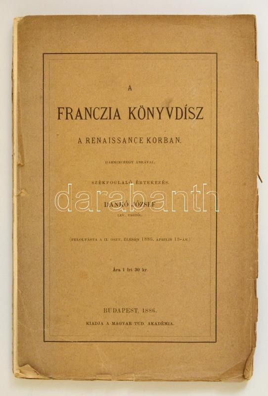 Dankó József: A franczia könyvdísz a renaissance korban. Székfoglaló é... https://www.darabanth.com/en/314-Online-auction/314.0/Books/Books-Other-rarities~100046/Danko-Jozsef-A-franczia-konyvdisz-a-renaissance-korban-Szekfoglalo-ertekezes-Bp-1886-Ma~II1723060