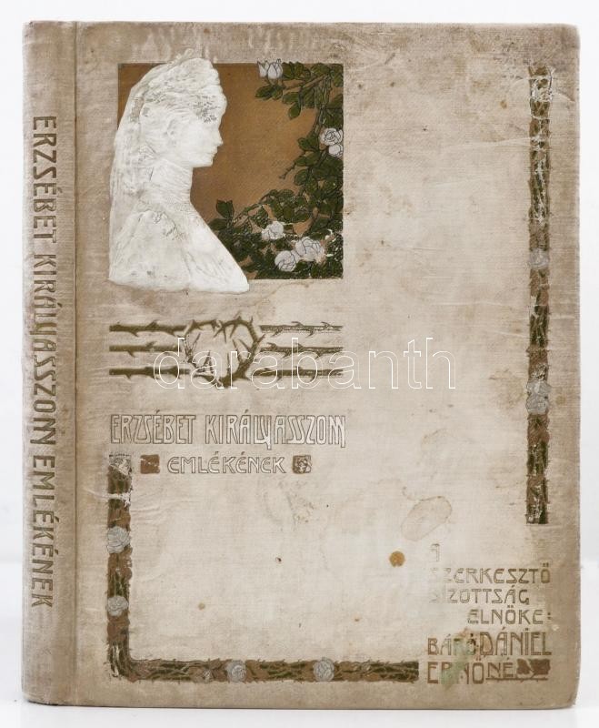 Erzsébet királyasszony emlékének. Hódolat Magyarország nagy királynéjának. A királyi ház fenséges tagjainak és a magyar nemzet jeleseinek kegyeletes közreműködésével. A szerkesztő bizottság elnöke: Dániel Ernőné. Főszerkesztő Gábel Gyula. Bp., 1905, Globus, 176 p. Gazdag szövegközti és egészoldalas képanyaggal. Kiadói aranyozott, festett egészvászon-kötésben, rossz állapotban, a borítója foltos, kopott, a lapok néhol foltosak, 54-59. oldalak között az egyik lap hiányzik, a másik lap részben hiányos.