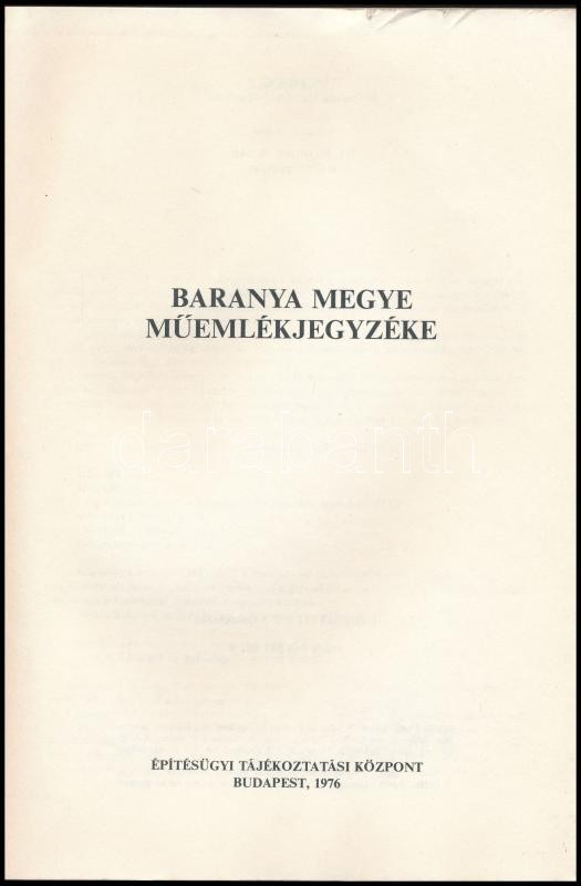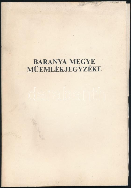 Baranya megye műemlékjegyzéke. Országos Műemléki Felügyelősség. Szerk.... https://www.darabanth.com/en/314-Online-auction/314.0/Books/Books-Travelling-Local-History~100031/Baranya-megye-muemlekjegyzeke-Orszagos-Muemleki-Felugyelosseg-Szerk-Dr-Tilinger-Istva~II1718645