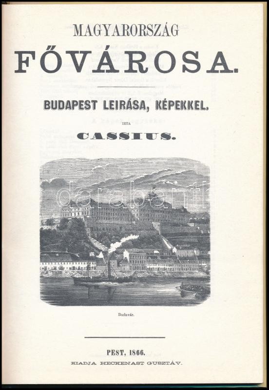 Cassius: Magyarország fővárosa. Budapest leírása, képekkel. Bp.,(1995), Helikon. Kiadói kartonált papírkötés. Reprint kiadás.