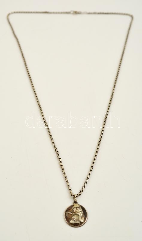 Ezüst (Ag.) nyaklánc medállal, jelzett, h: 55,5 cm, nettó 5,2 g