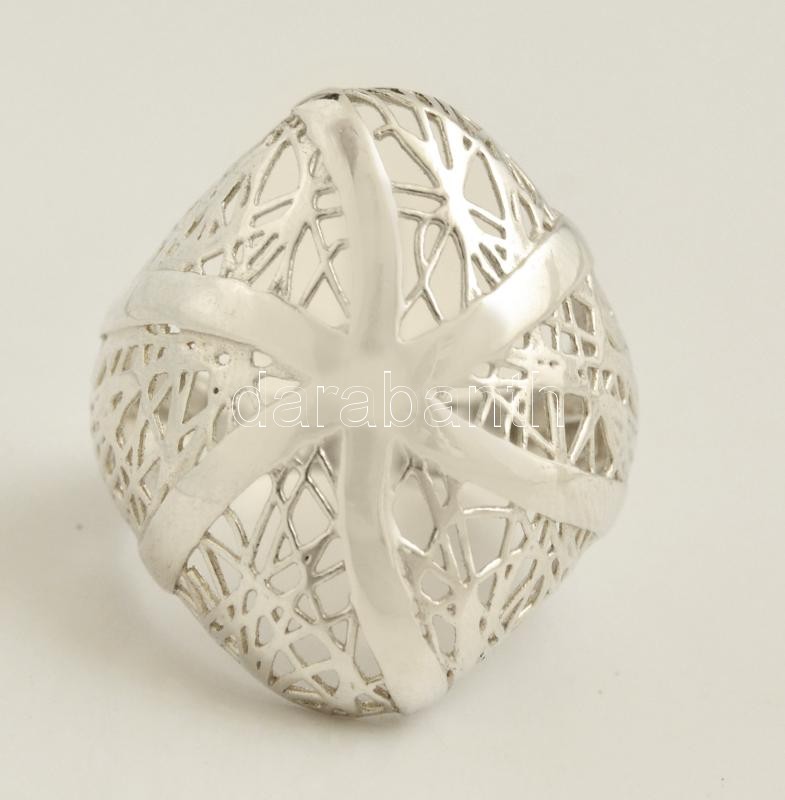 Ezüst(Ag) áttört gyűrű, jelzett, méret: 56, nettó: 4,6 g
