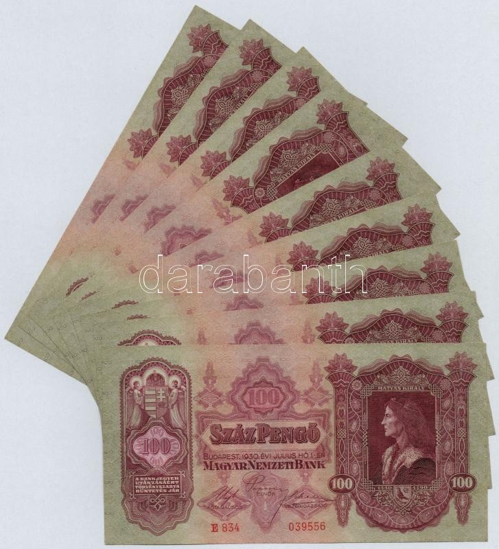 https://www.darabanth.com/en/314-Online-auction/314.0/Numismatics/Hungarian-Banknotes~500006/1930-100P-9x-sorszamkovetok-TI-I-~II1718562